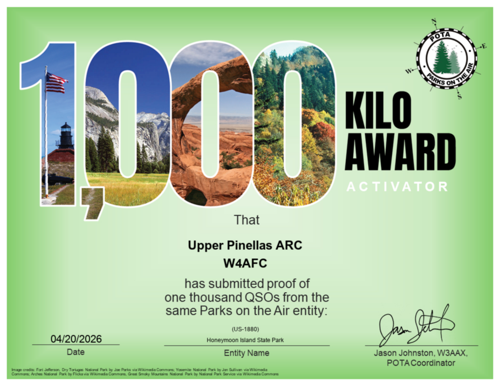 On October 18, 2025, UPARC engaged in support of the Greater Tampa Bay Area Council’s Jamboree on the Air at Troop 12 in Lutz, Florida, for the fourth consecutive year. Our club participants included Ryan Rager (AF4O), Alan Streitman (W4UB), Olev Isak (N4OHI), Rob Bird (WD4IFT), Ron Ambrosio (N2SKH), Jack Kinney (N4KIN), Fred Botero (W2SUB), Joshua Luria (KO4VVX), Charlotte Luria (KO4WNK), Gabriel Luria (KS4GAB), and Melissa Luria (KS4MOM), with the logistical support of Tom Schaefer (NY4I).