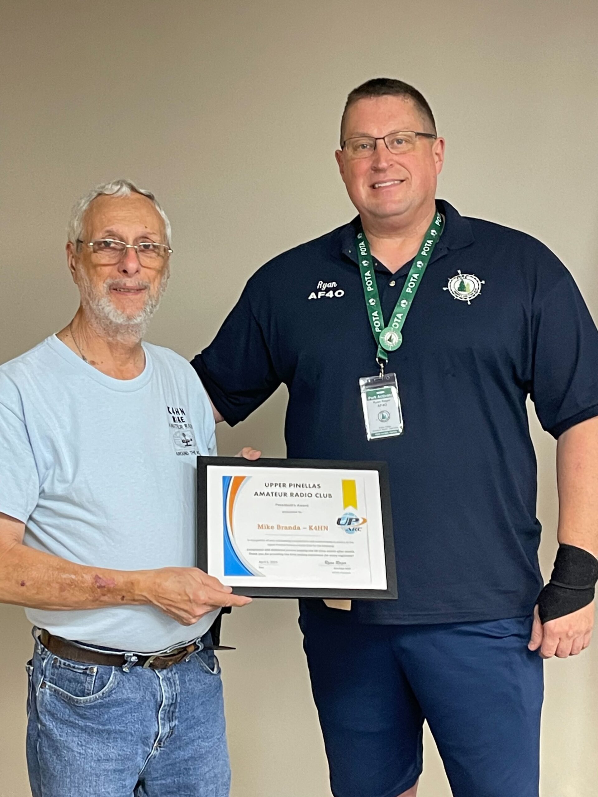 This month, President Fred Botero W2SUB brought us a double-header President’s Award. The first award was give to Ray Dabkowski W8RD for services to the club as a topic presenter and for assistance with Honeymoon Island events.